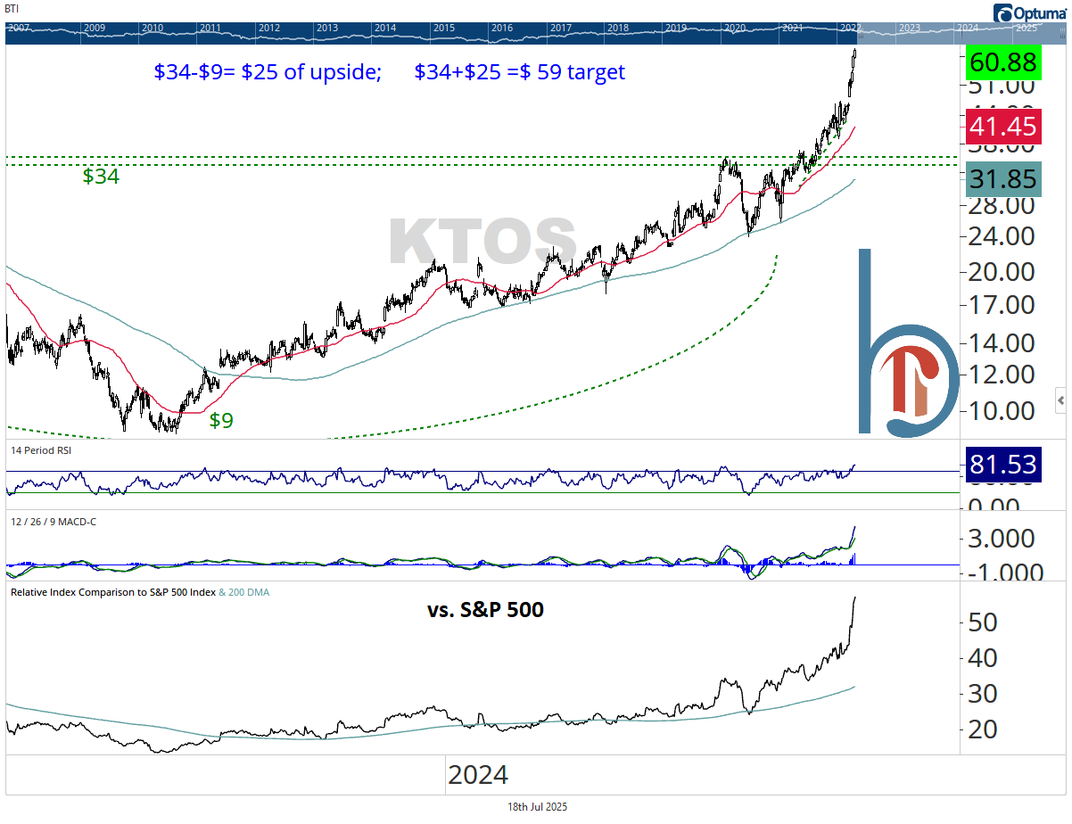 Today, we’re taking profit in Kratos Defense & Security Solutions (KTOS). The bar for selling 52-week highs is very high but in my view, the risk/reward for continuing to hold is no longer in our favor.