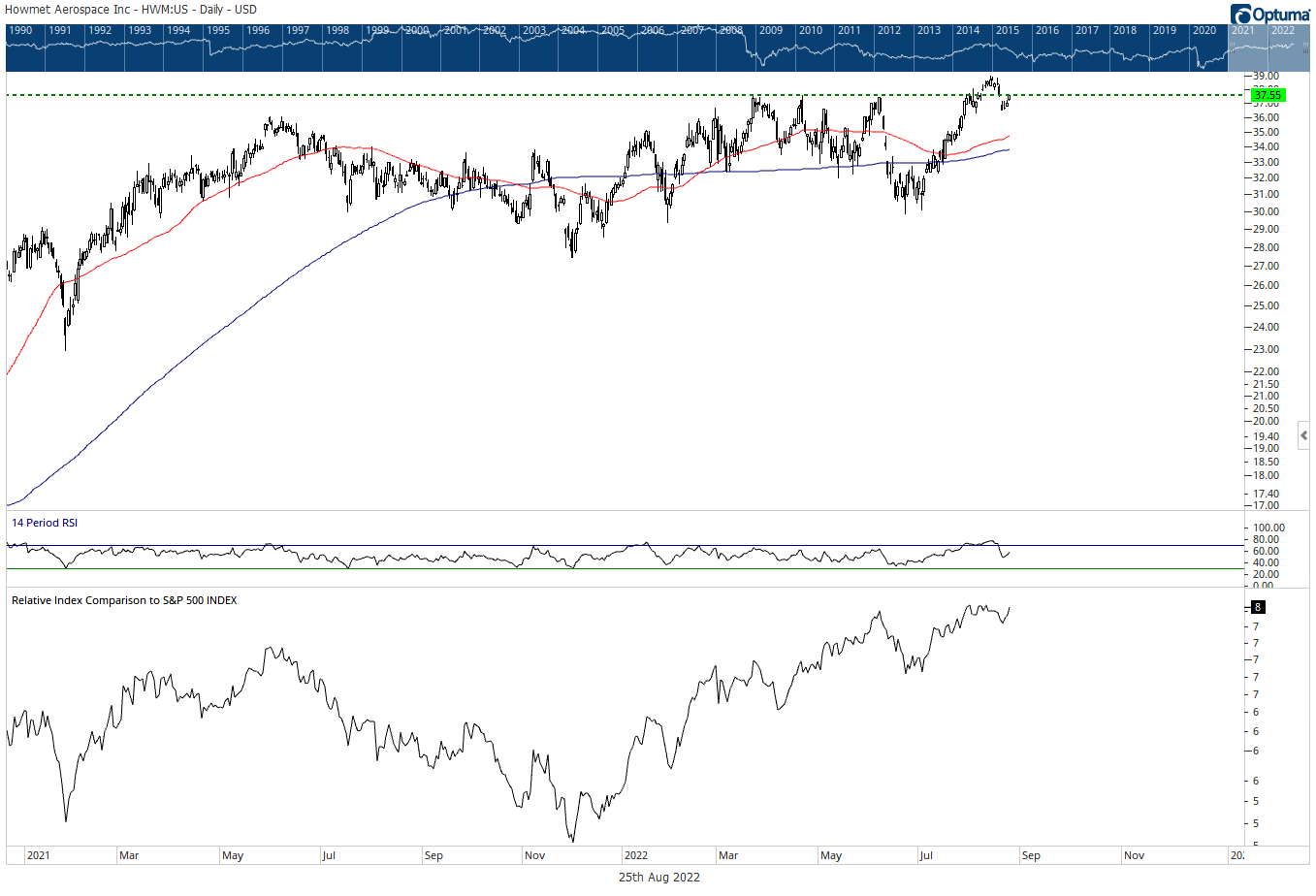 Lastly, Howmet Aerospace (HWM) appears to be worth a look. Holding the breakout point would make managing risk easier, but it already appears to be bouncing back. Use the August intraday lows at $36.28 as a stop.
