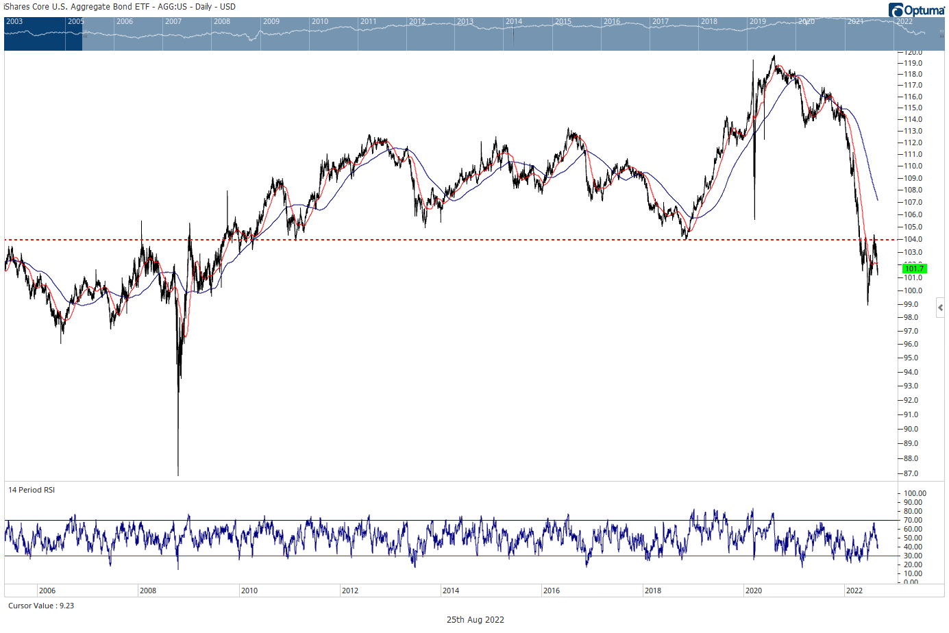 We can make this simpler by just charting core bonds. Below is AGG. If this was a mid-cap software company would you own it??