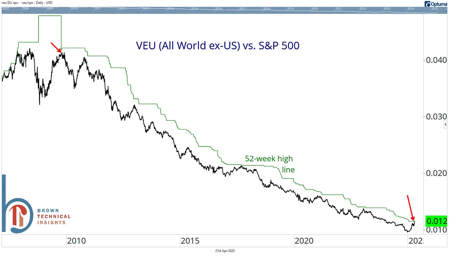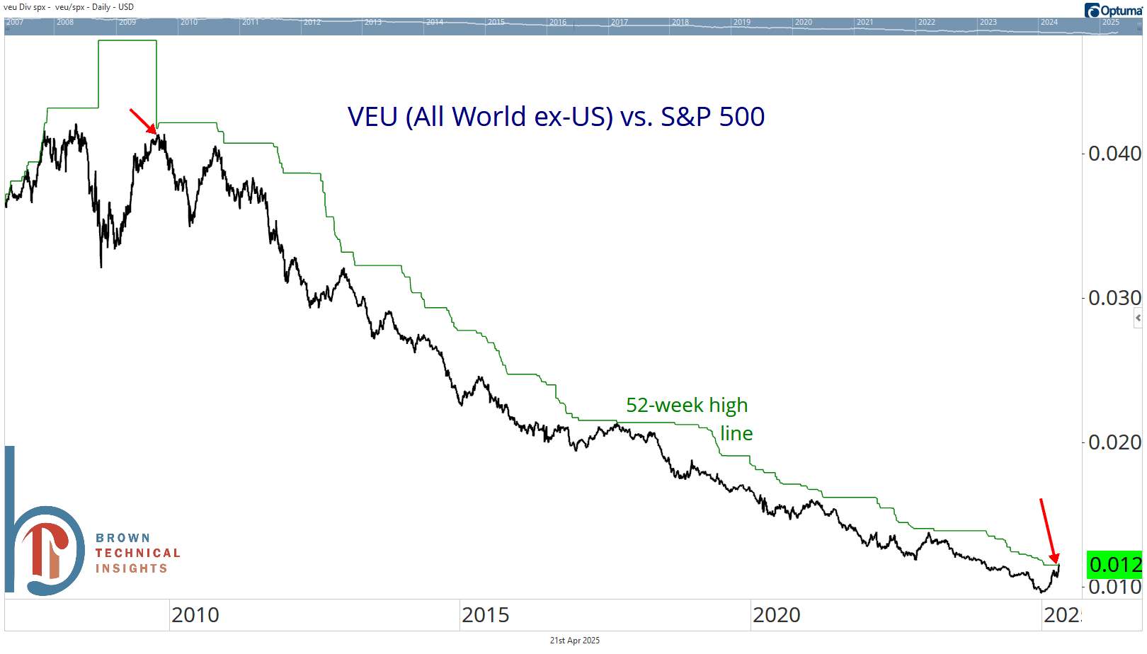 My answer is yes. One example, the “rest of the world” is making its first 52-week high vs. the S&P 500 since October 2009 and the first consecutive 52-week highs since 2007 before this ratio began its long descent.