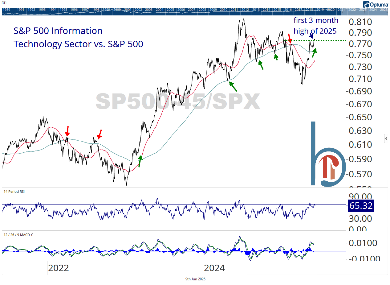 Since the April lows, no sector has been better than technology. In fact, of the 11 SPDR ETFs, Tech is outperforming the next-best sector (industrials) by nearly 10%.