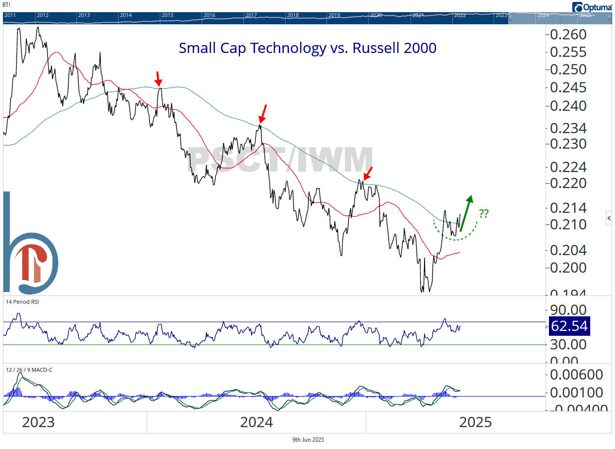 And small cap technology is trying to reclaim the 200-DMA vs. the Russell 2000 for the first time since the fall of 2023.