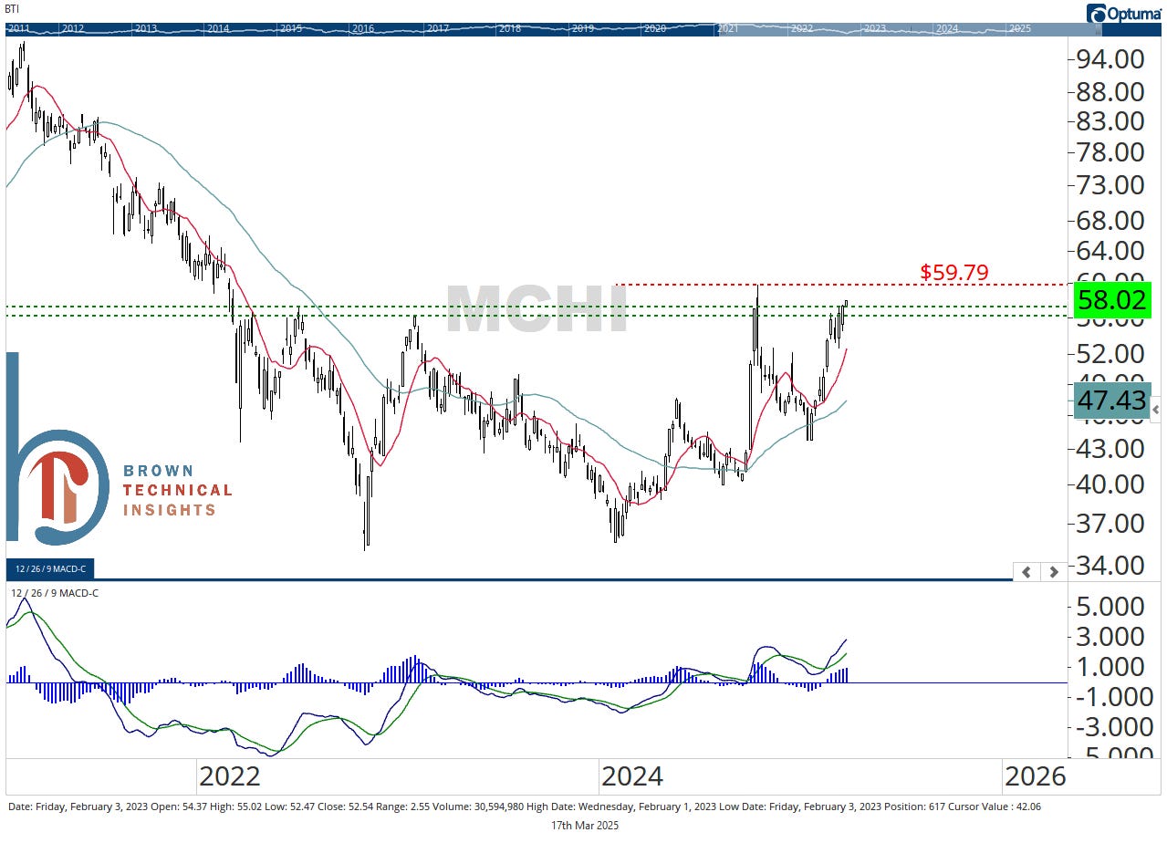 China is leading this morning, up more than 1.2%. We’re back through the breakout range and the only thing left to call resistance is the October highpoint of $59.79. I think it gets there and like it long.