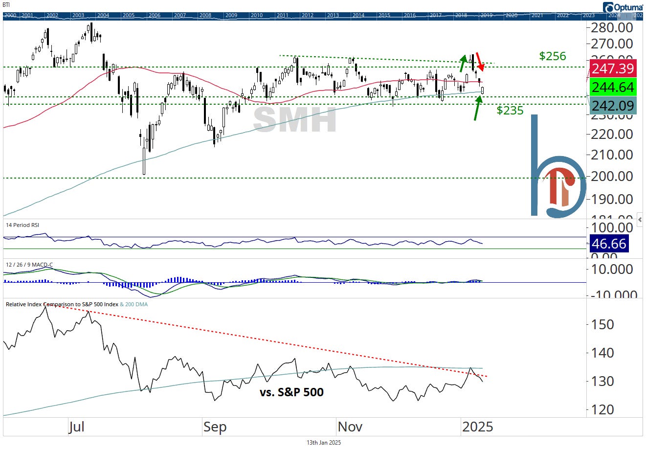 $242 followed by $235 are the downside levels to watch. #2 holding in SMH, Taiwan Semi reports Thursday before the bell.