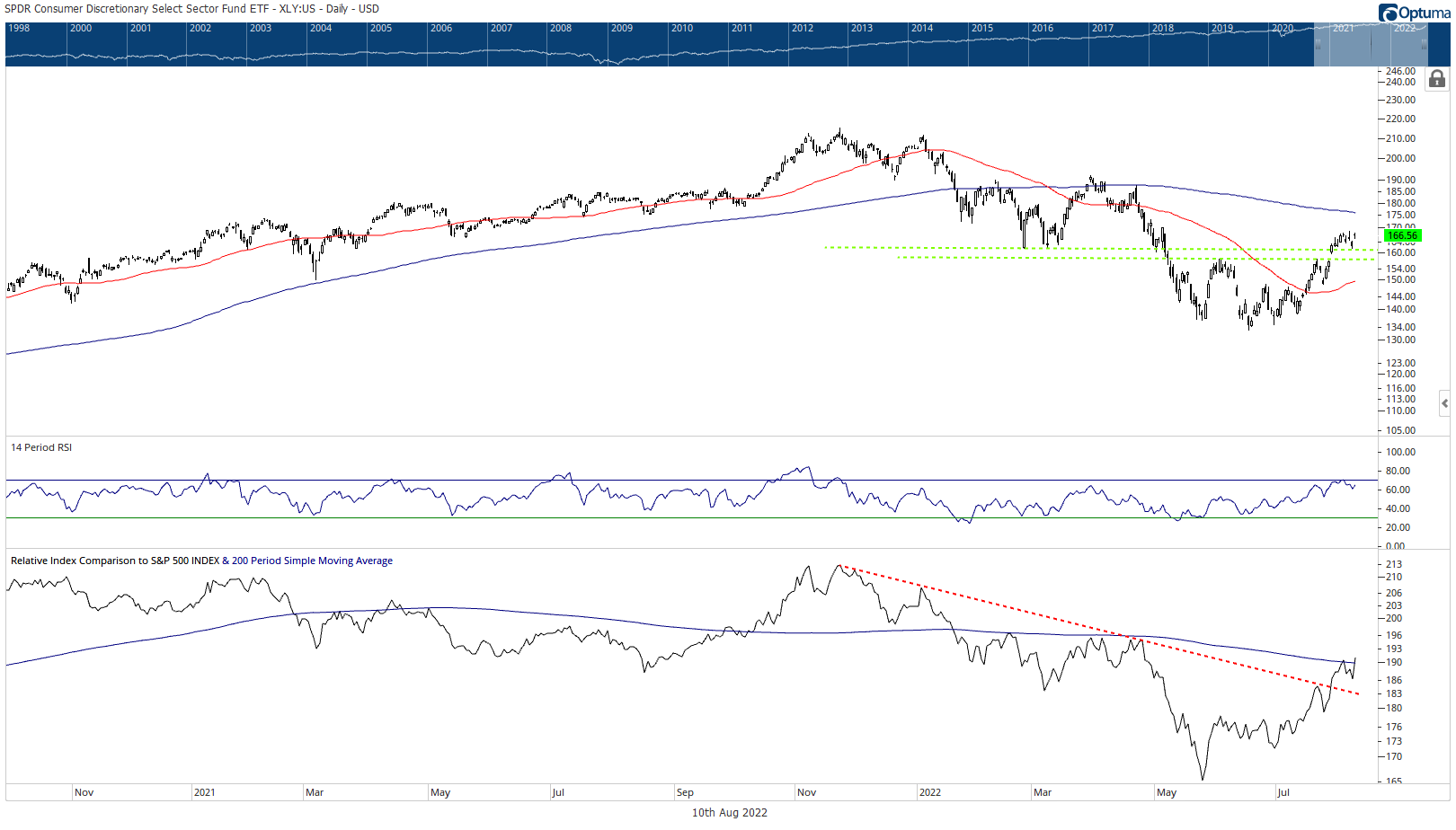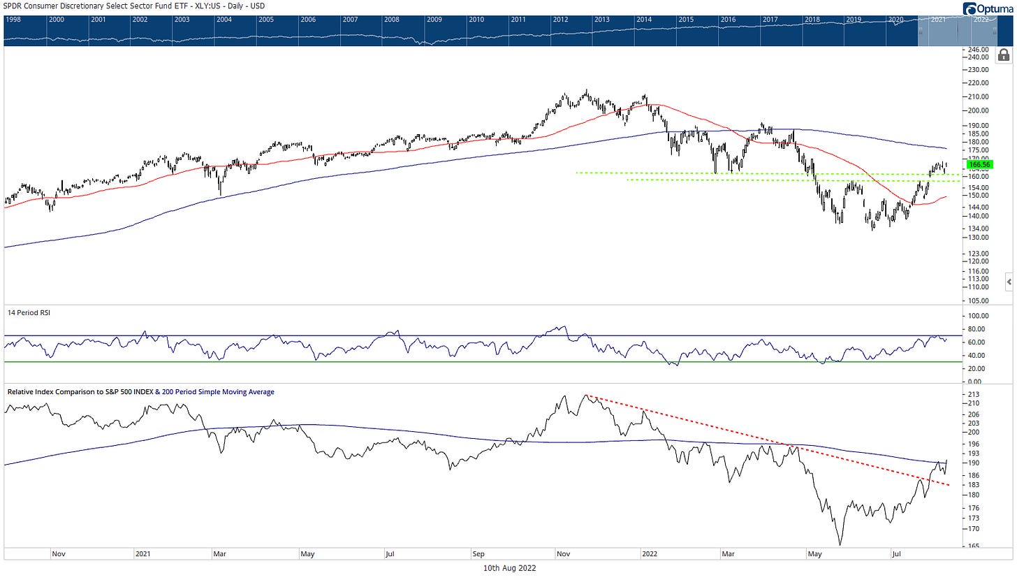 XLY: Not to be sticklers here again, but we can’t help but notice that XLY is also not through its Monday highs. That said, an entry point up above the $160 range isn’t crazy, and this is no longer a clearly lagging sector, as shown in the bottom panel.