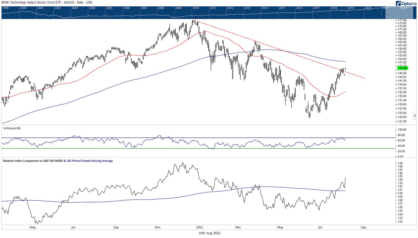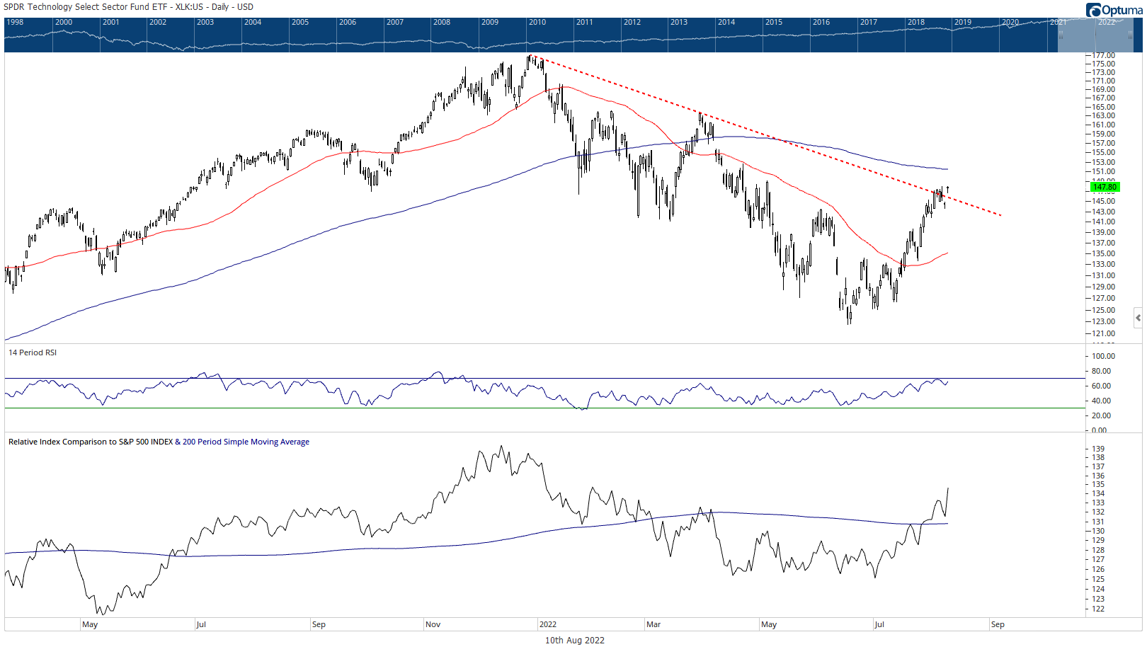 In relative terms, Apple continues to do all the heavy-lifting. You don’t have to be overweight, but you sure can’t be underweight this sector if you run an ETF model, or at least that stock as long as it continues to act this strong.