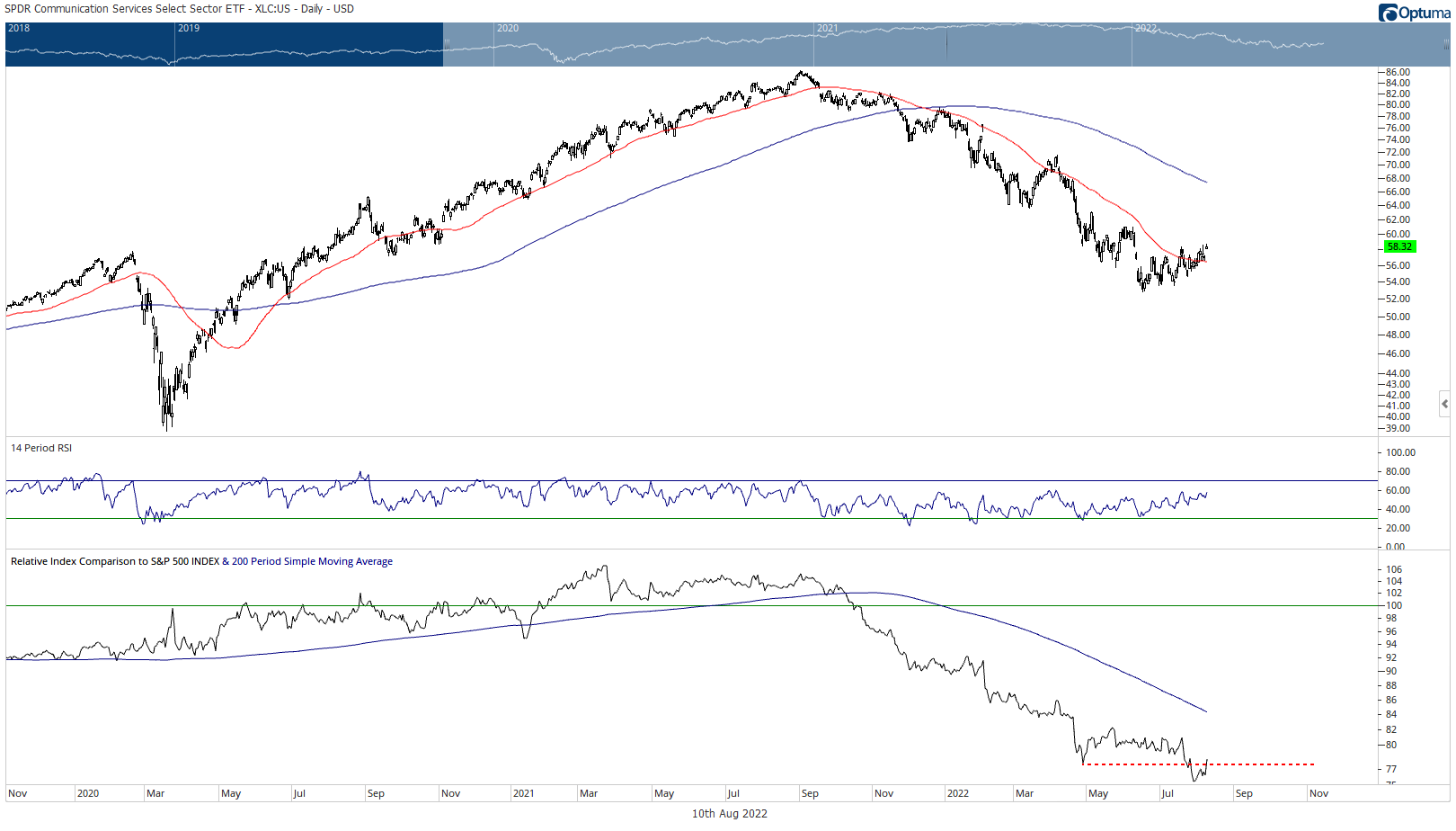 XLC: How can you not hate this sector? Just days removed from fresh 52-week relative lows and still in a steep decline of lower lows and lower highs in price.
