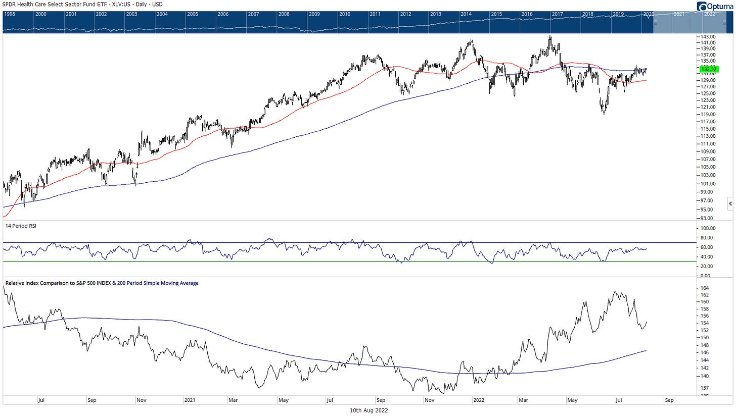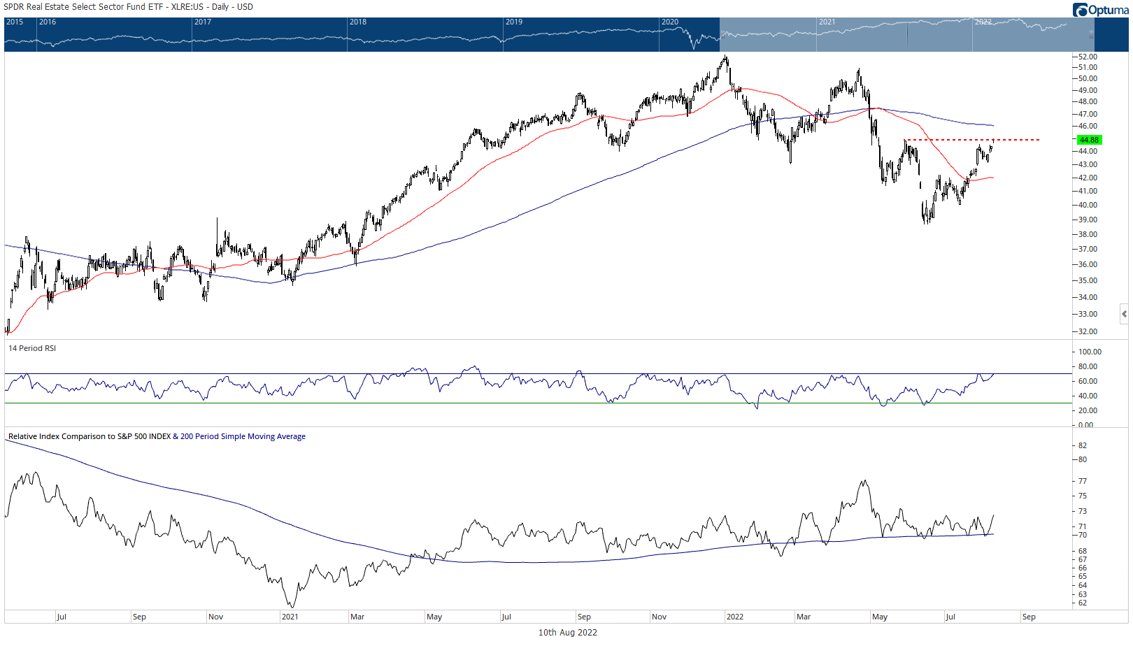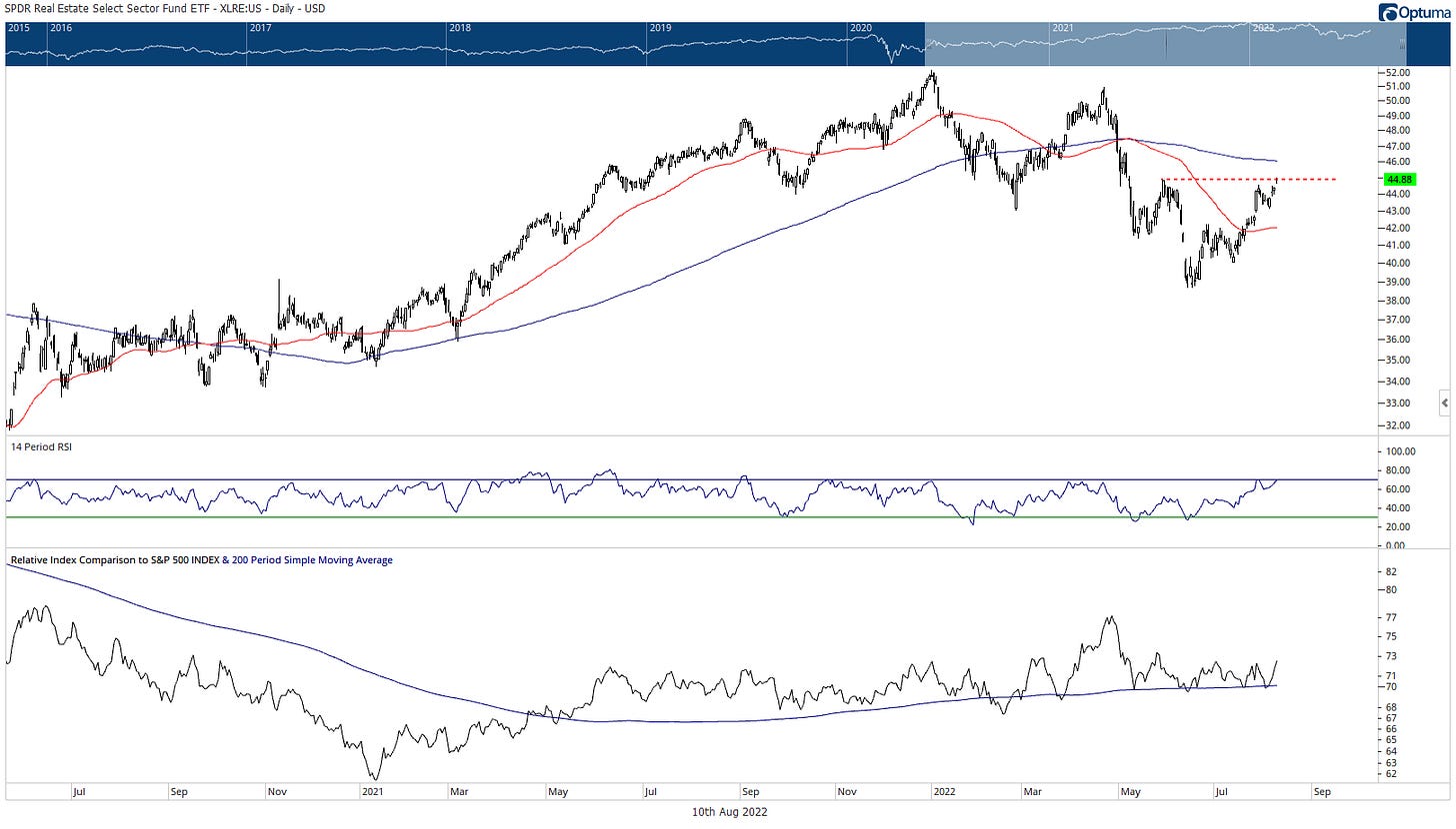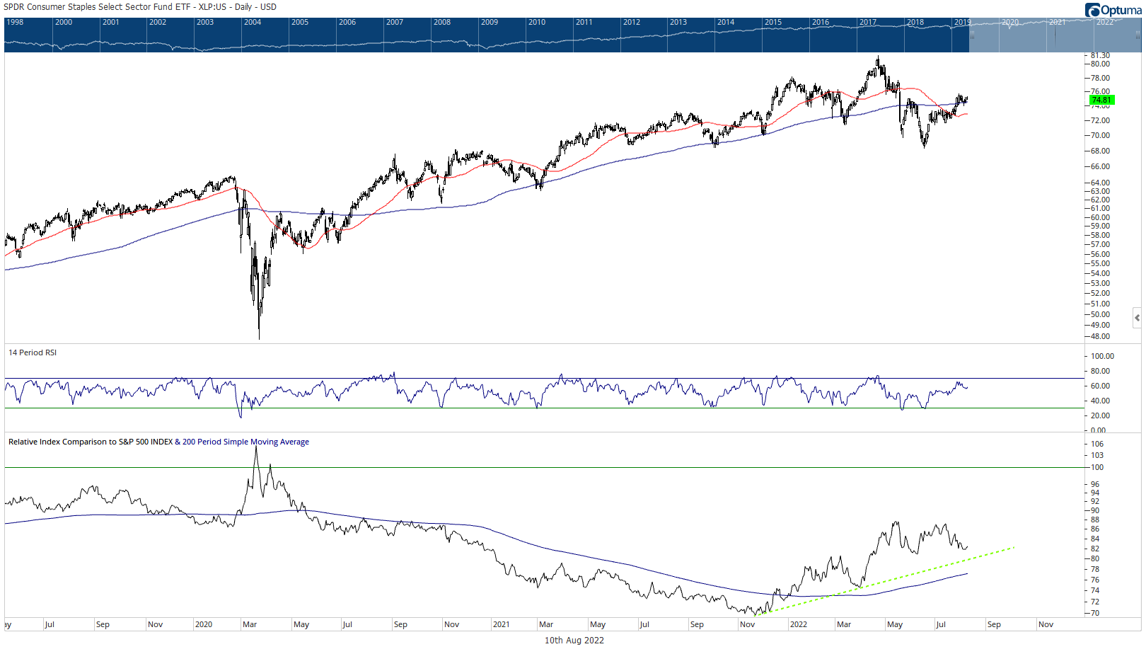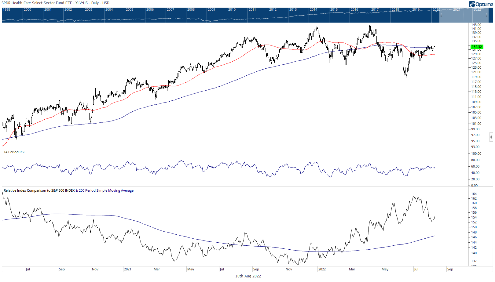 XLP: It is relative strength showtime! After printing a lower relative high in July, will a lower low be next for XLP? Time will tell, but for now it has to get the benefit of the doubt as a leading sector, which isn’t great because it looks like dead money in absolute terms. Stuck to that flattening 200-dma that acted as support throughout 2021.