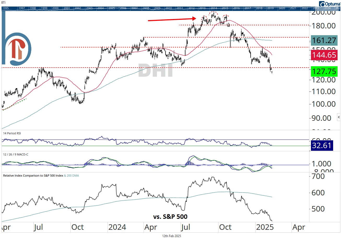 Sometimes a head and shoulders pattern does signal a major reversal. It sure did with DHI which is down 36% from its September highs. The stock is hitting its first 52-week low since June 2022.