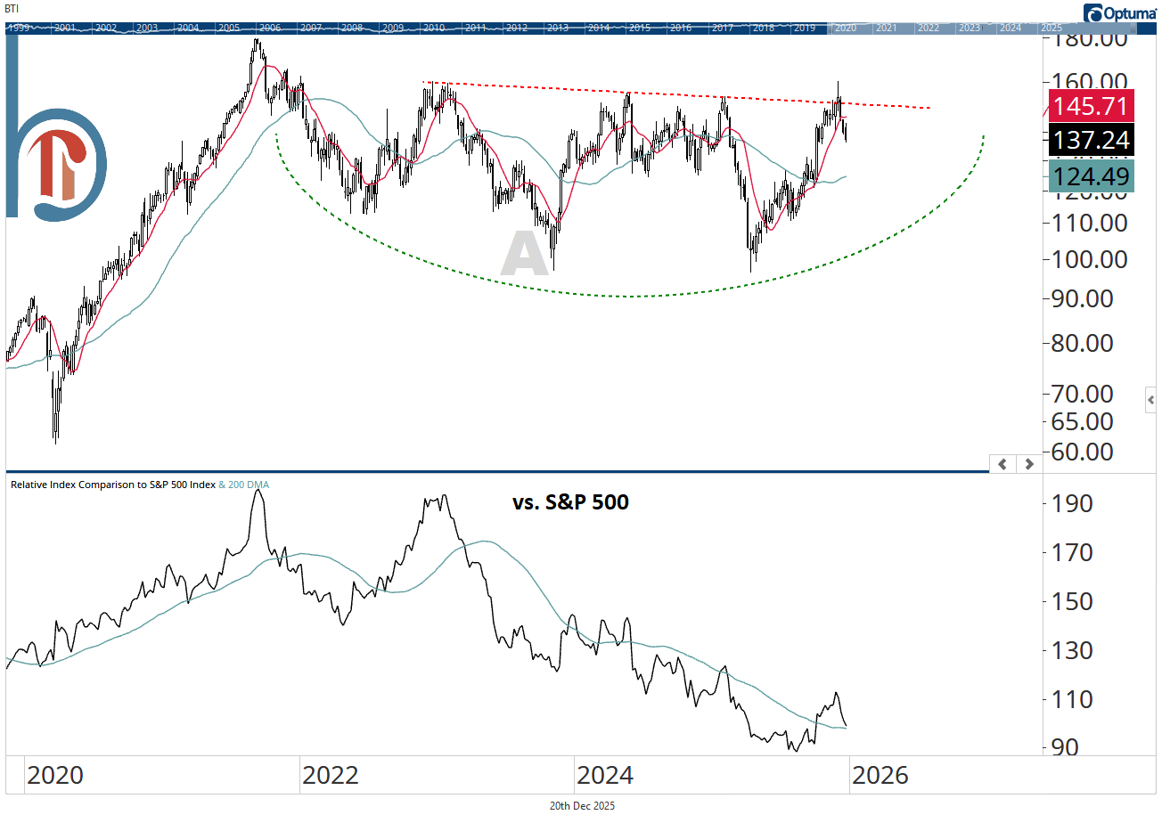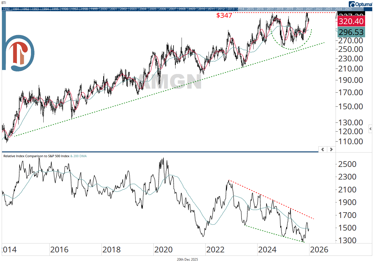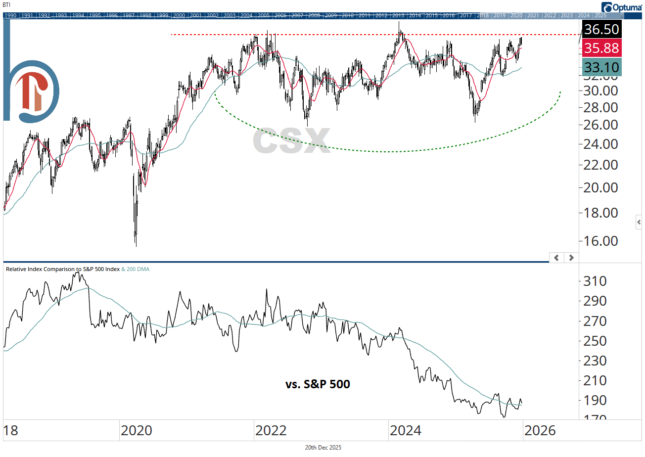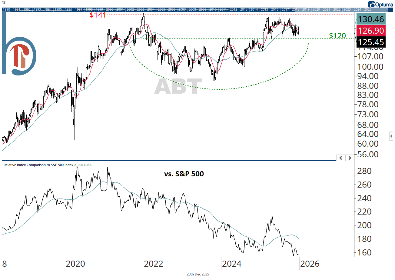 Note that all charts shown are with weekly candlesticks and relative to the S&P 500 in the bottom panel. All prices are as of this weekend’s close (December 19) so we aren’t looking at incomplete candles, but I’ve reviewed all the holdings and notated any material stock price moves over the past two days.