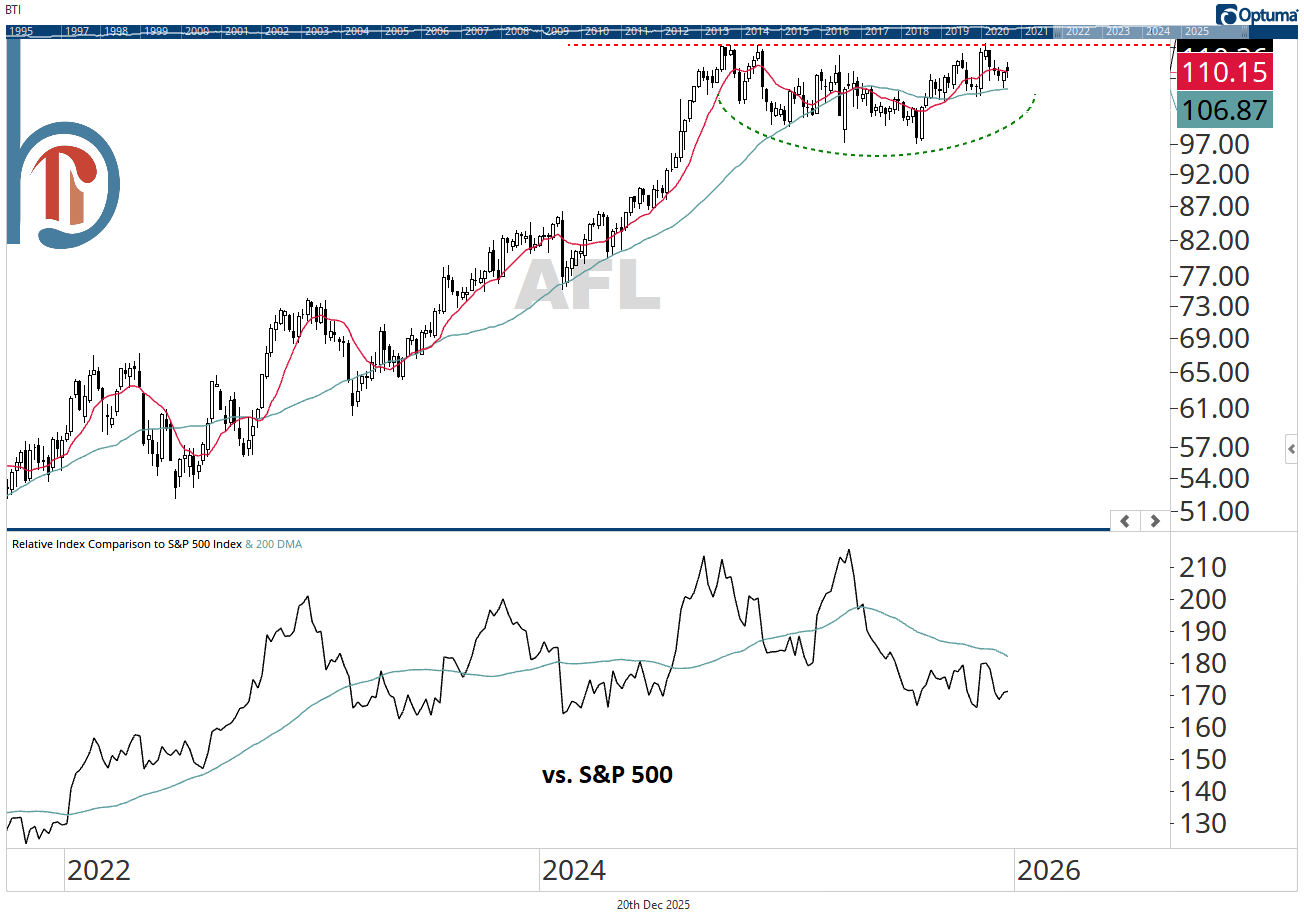 Get ready to see a lot of insurance charts, including some that have already broken out. That’s the expectation for Aflac.