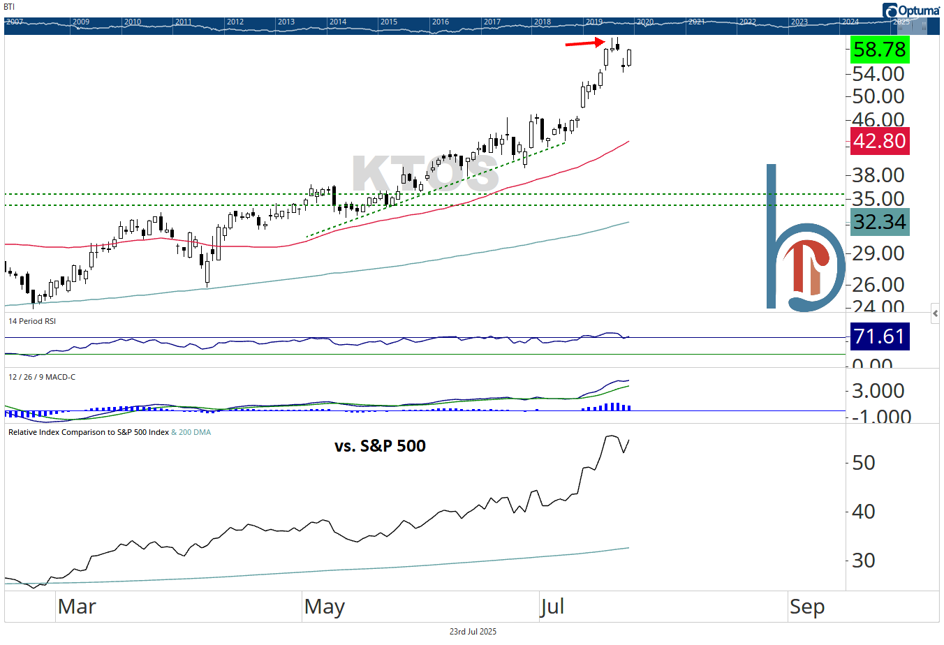 KTOS closed well off its highs from the day we sold it (final 55% gain) and proceeded to drop more than 6% the next two days. It bounced back yesterday, but I’m skeptical the stock can quickly reclaim recent highs above $61.