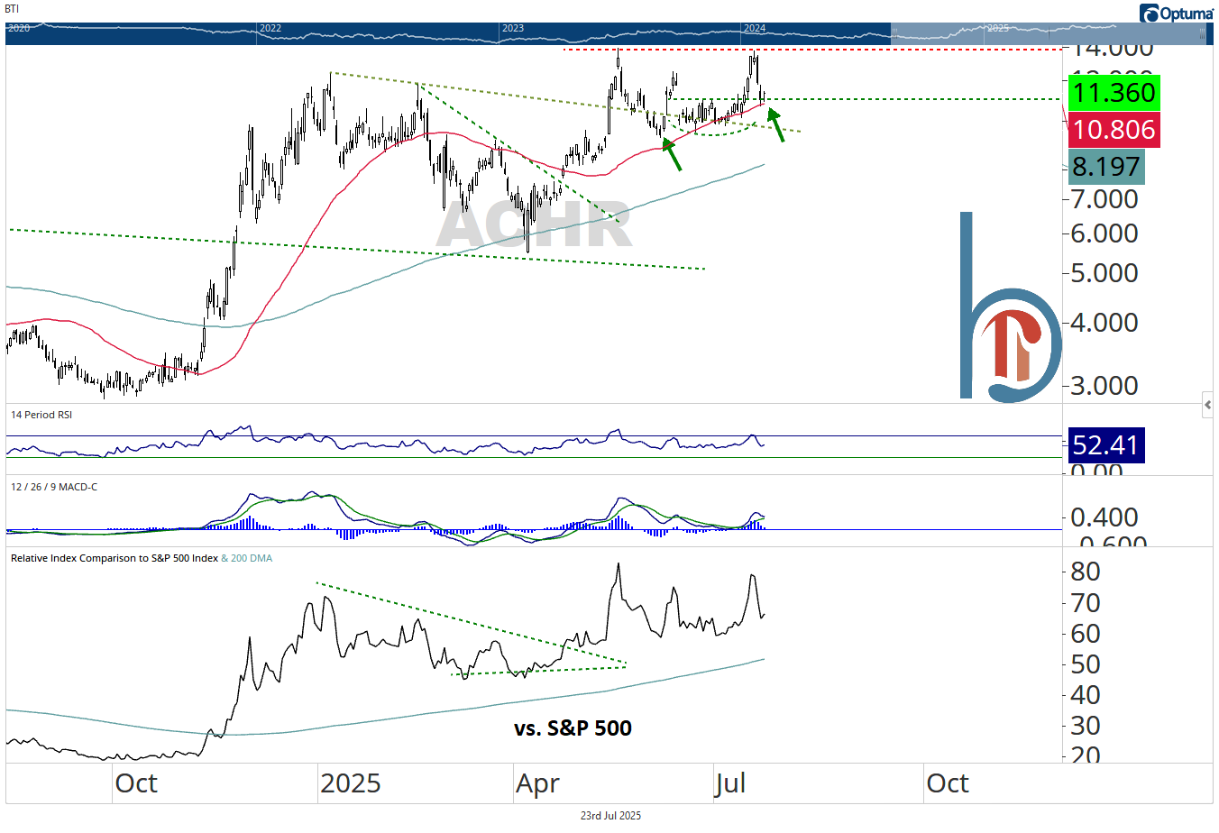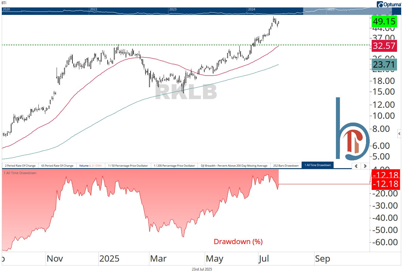 Last week, I said this would be a logical place for RKLB to start to see some digestion, and the stock quickly fell 16% from highs hit later that day. The trend here is firmly intact and based on this stock’s (extremely volatile) history, it could very well continue higher. If I’m wrong about a tactical top in this group or one stock bucks that trend, this would be my pick to stay long.