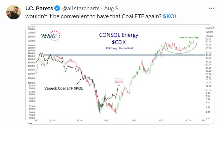 The first is that many of the “high-flyers” are really flying again. The stocks that went up 5 or 10-fold in 2020-2021 and then fell 80-90% are really working again. This is ironic in light of the MEME stock ETF announcing its closure just last week but it wouldn’t first time that such a closure has marked a potential contrarian signal…