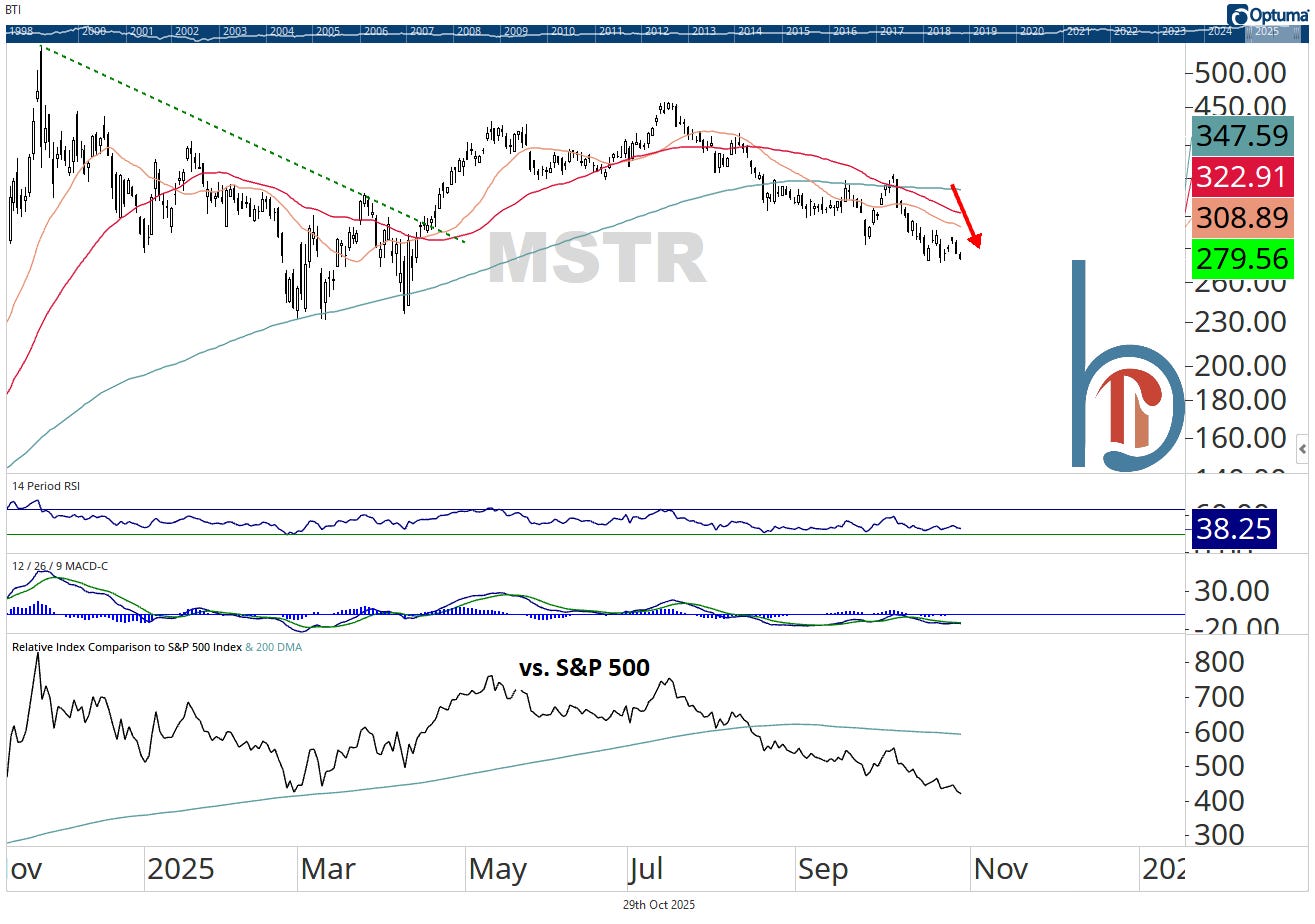 Strategy continues to trend in the wrong direction, and is below all key moving averages, which are heading lower themselves.