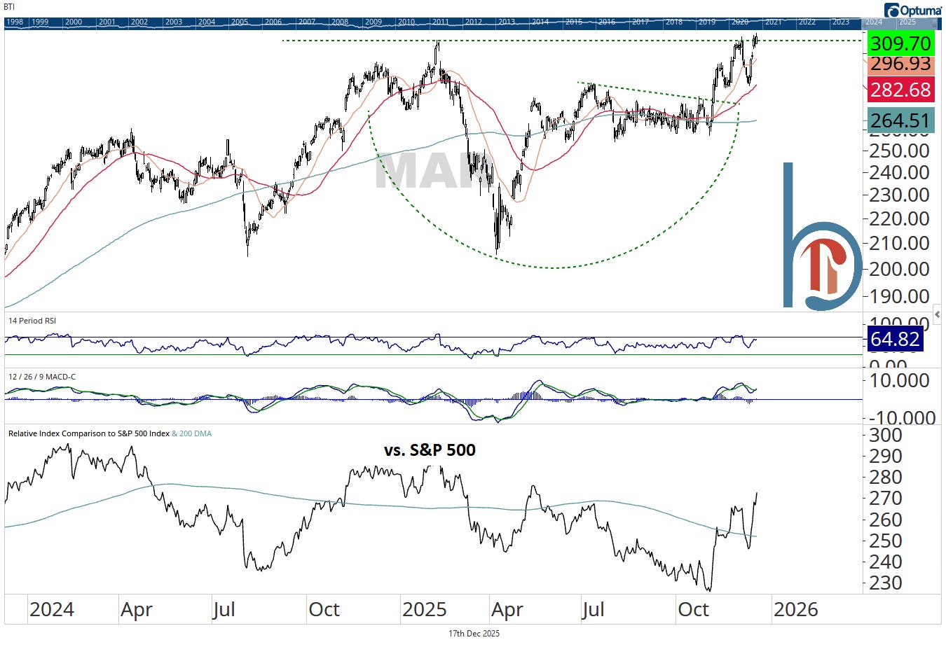 Marriott hasn’t looked back since breaking out in November. The stock is now making all-time highs and was strongly positive in yesterday’s tech-led selloff.