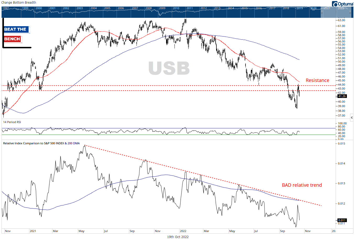 US Bancorp popped on earnings like nearly all the banks, unfortunately this looks like a rally to sell. The stock had already broken key support prior to the report, and that level (~$43) is now acting as resistance.