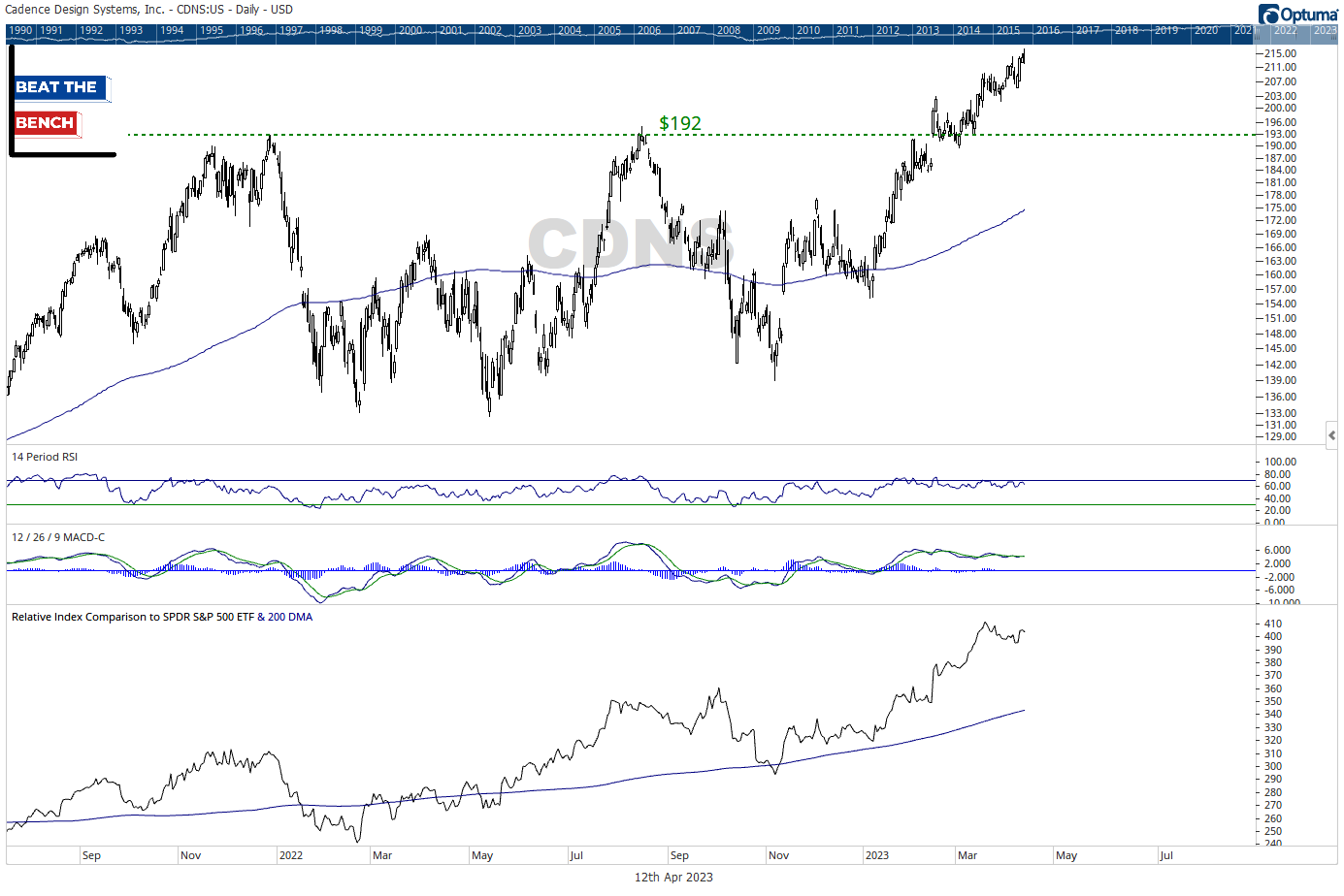 CDNS has been as strong as they come, but the stock printed a bearish engulfing (or outside day) on Wednesday, just like the S&P 500 did. Pullbacks towards $192 should be viewed as buying opportunities.