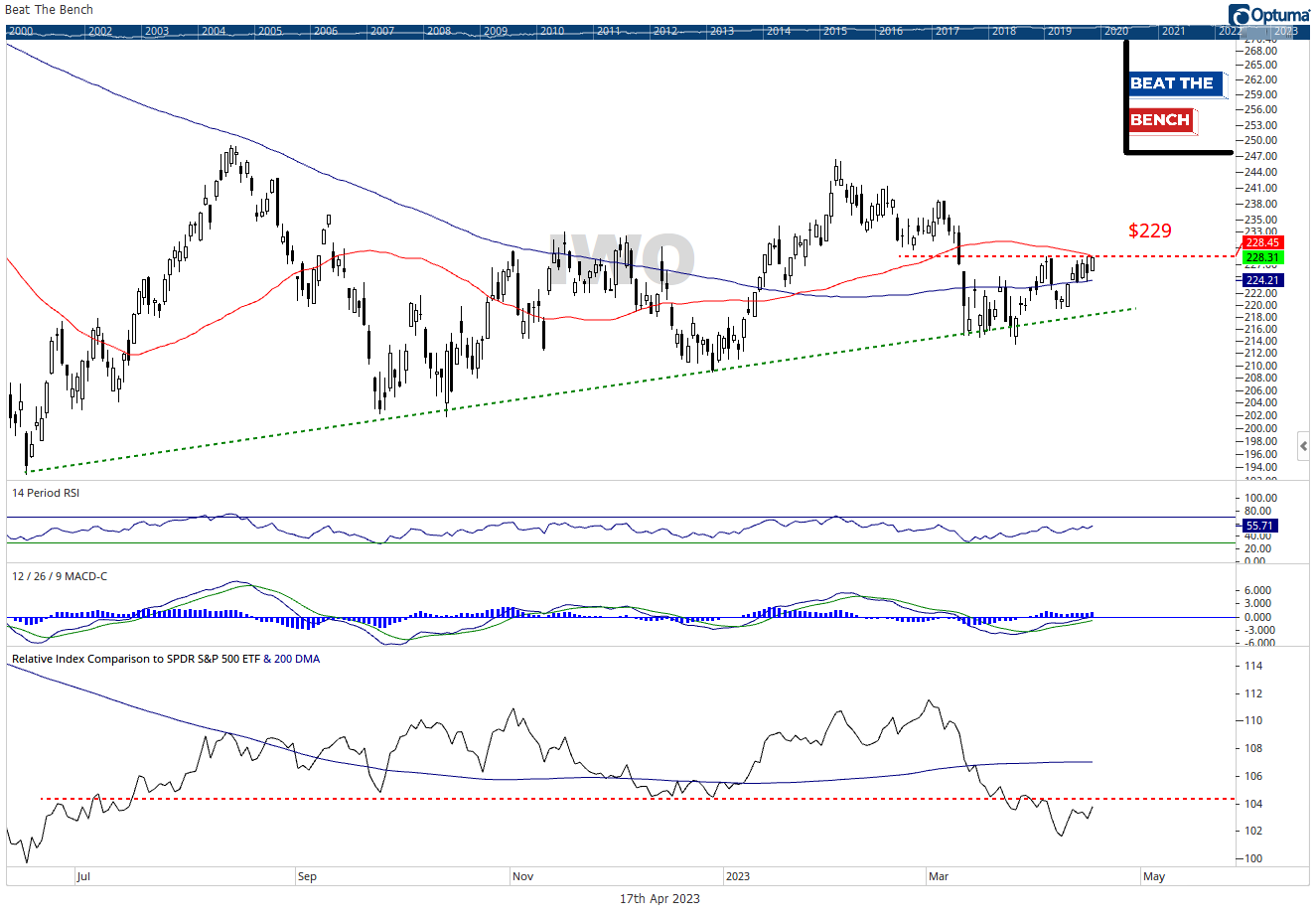 Small growth also gained 1.2% on Monday, but that failed to even clear its Friday high. IWO needs to clear $129 this week or else we risk breaking the uptrend line that goes back to its summer lows.