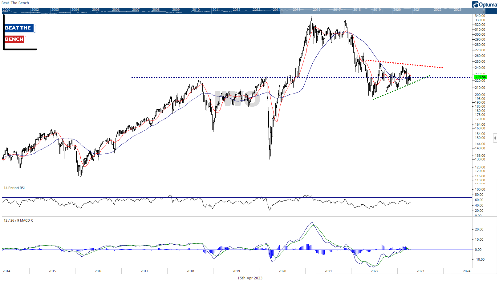 Small-cap growth stood out for its nearly year-long triangle pattern, which will soon reach its apex. That consolidation is happening right at the 2018-2020 highs, making the resolution all the more significant.