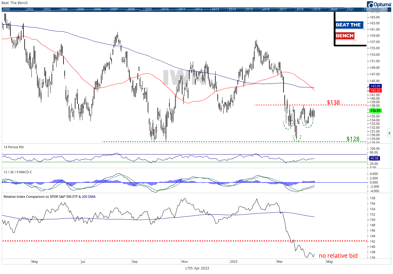 Let’s start with the two charts that caught my eye when putting together yesterday’s Playbook. Small-cap value gained 1.2% yesterday, but it needs to clear $138 to complete the inverse head and shoulders pattern. And most importantly, we don’t want to see it break the 2022 lows.