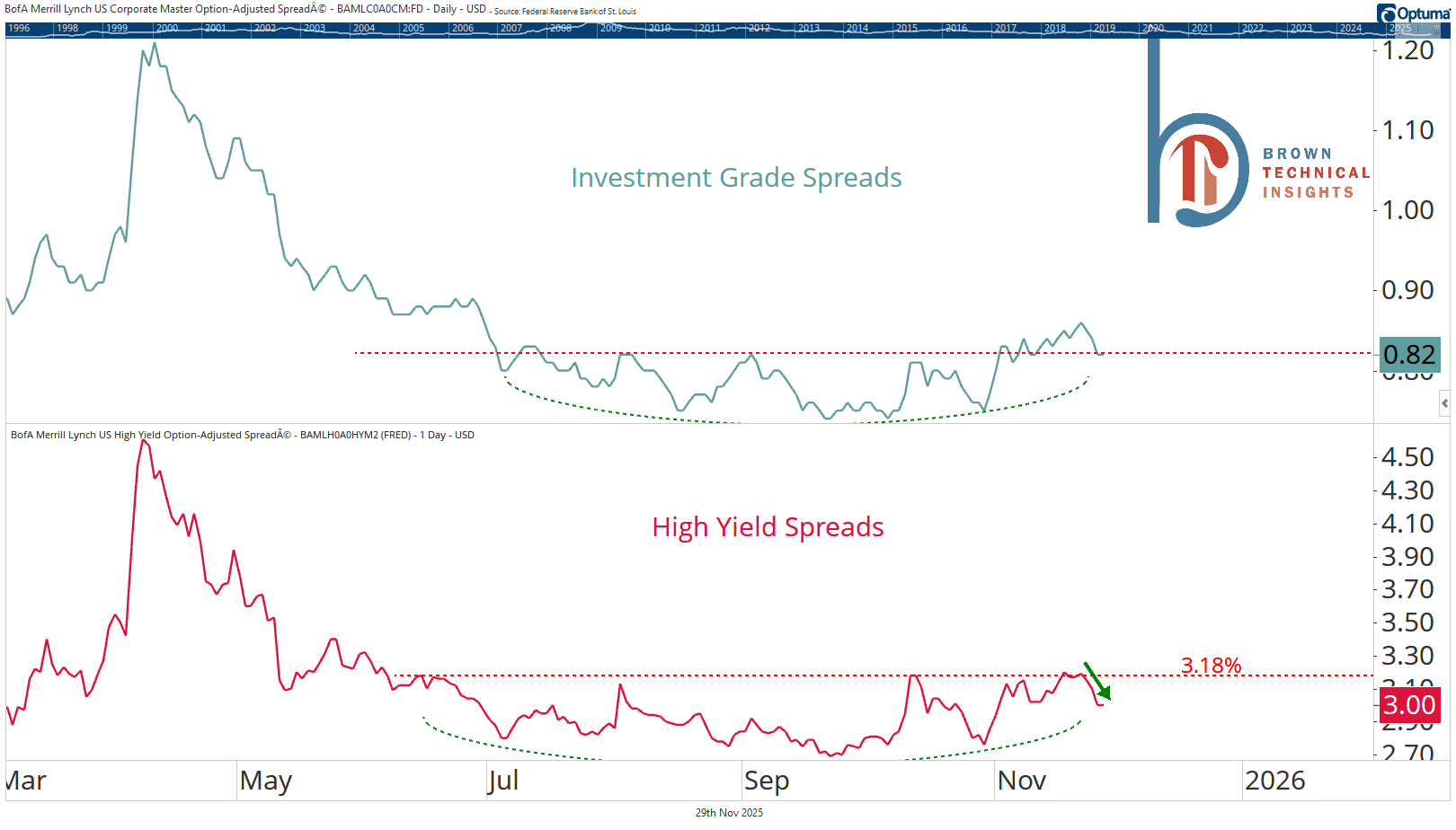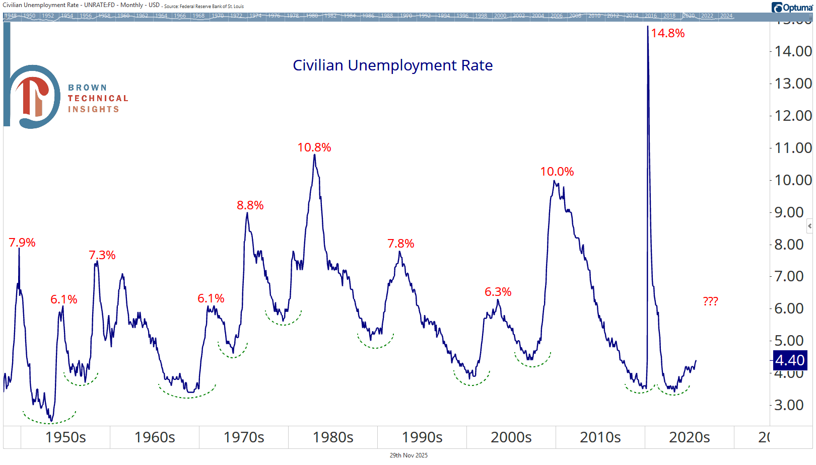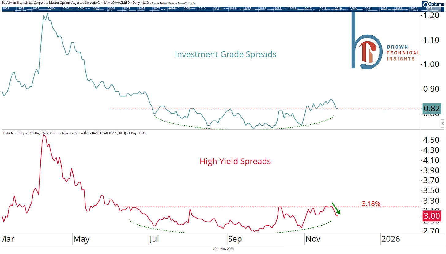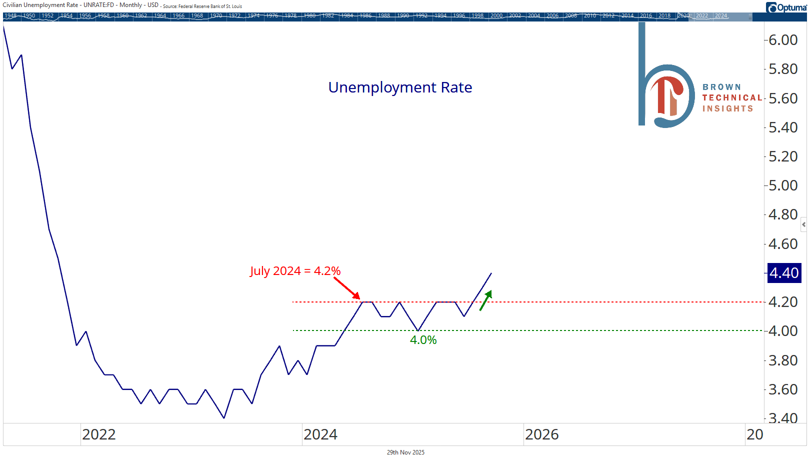 However, today’s report will highlight a number of charts that need to continue higher, and any near-term failures could be additional reasons for caution. We’ll also review why it seems obvious that the Fed should be cutting, and what market expectations say about their plans in 2026.