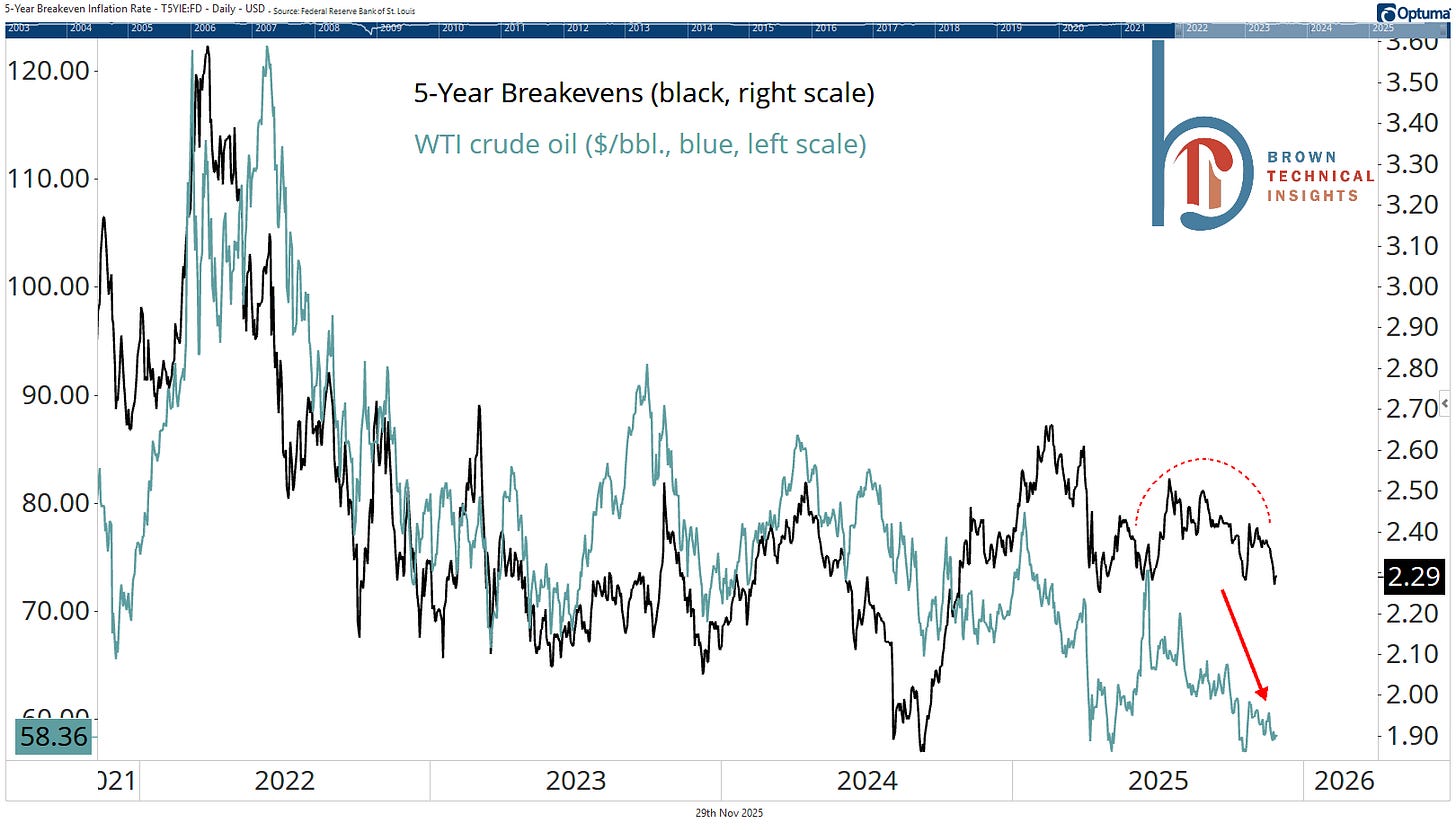 5-year breakevens hit their lowest level since April last week and sit at just 2.29%.