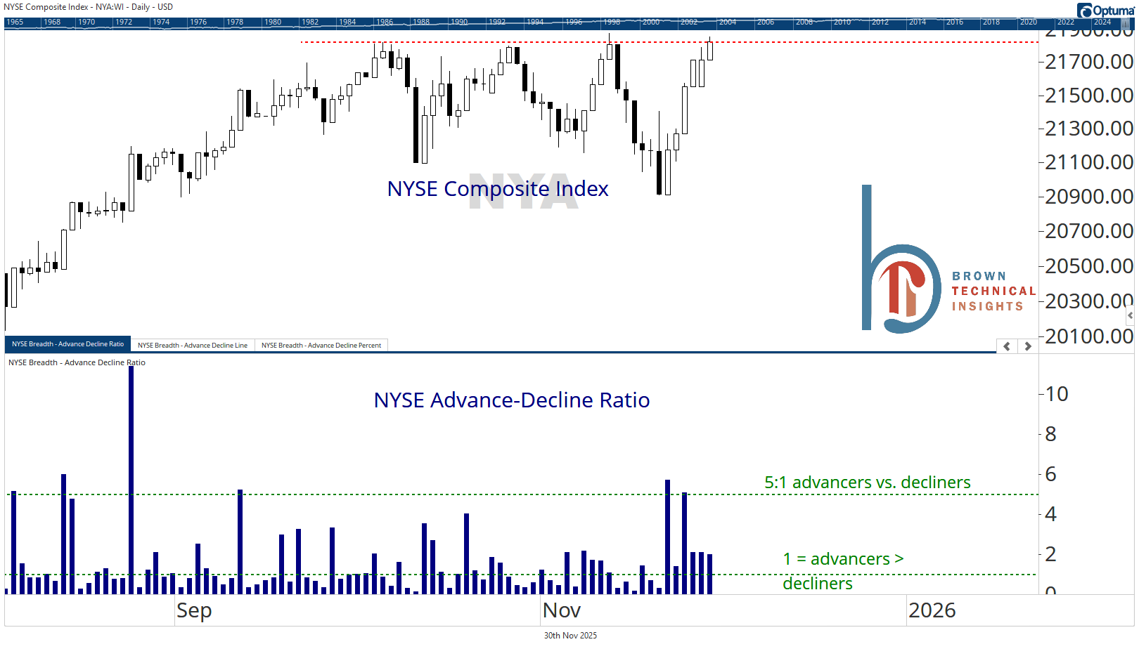 Advancers on the NYSE have outnumbered decliners for six straight days, and we’ve seen two days of better than 5:1.