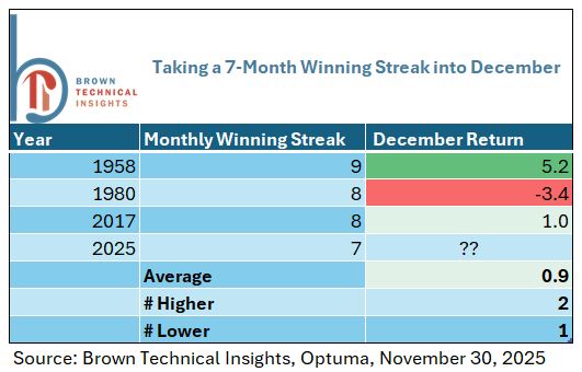 Just the 4th time we’ve taken a 7-month winning streak into December